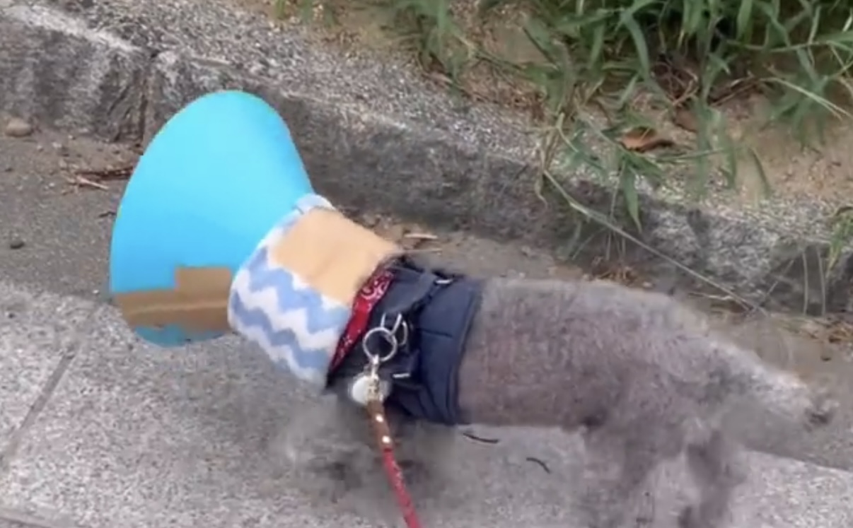 外してあげたい気持ちをぐっと堪え、エリザベスカラー姿のにこまるを信じて見守ることに。