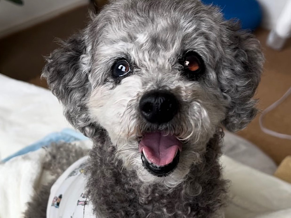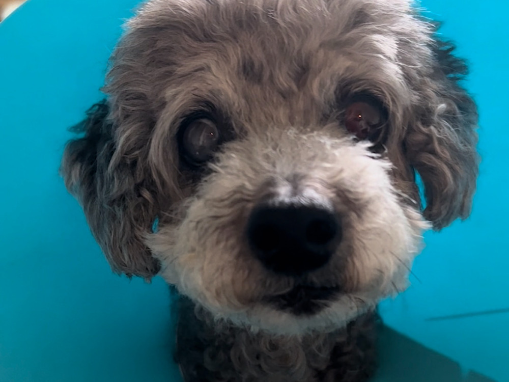 ※飼い主にとって一番大変だったのは、1ヶ月以上のエリザベスカラーと、厳密な時間指定の目薬投与を1ヶ月続けることでした。